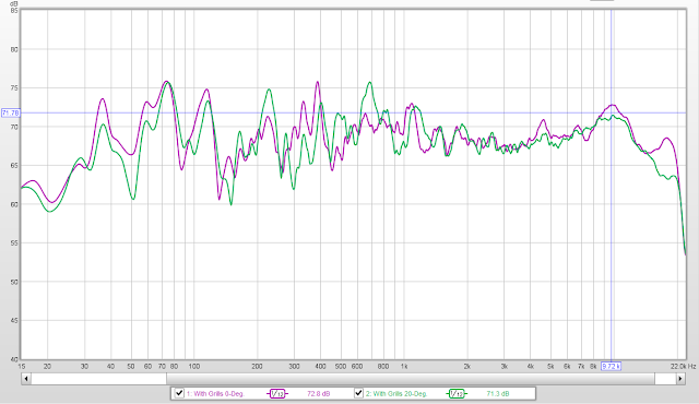 At 20-degrees off axis, the measured difference between grill on and off was actually a little smaller.