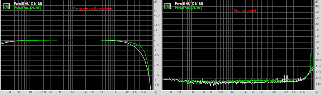 | 24/192kHz graphs - only showing frequency response & noise level as RightMark seems to have a bug when displaying crosstalk and IMD+N sweep results at 192kHz. |