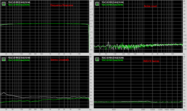 | 16/44.1kHz graphs. Notice the high frequency drop-off due to the Ayre filter. |