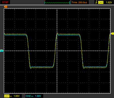 As usual, let's start with a look at the analogue output through the digital oscilloscope:A small amount of channel imbalance can be seen. The right channel (blue) is a little bit softer than the left. Peak voltage is at 1.62V. You can see that there's a little rise at the leading edge of each square wave. This asymmetrical morphology suggests we're looking at a minimum phase digital filter being used... VoilĂ :
