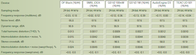 Generally, I would say that 16/44 is no big deal for modern hi-res DACs. But there's something fishy about the Dragonfly's distortion measurements. THD and IMD looks higher than the other devices. And crosstalk is found to be significantly lower as well compared to the others despite using the same set-up and cables.