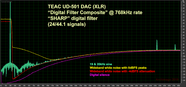 One "nice" feature with the TEAC UD-501 is that we can turn off the digital filter from the DAC menu. This makes the DAC into a "Non-OverSampling" (NOS) device. Here's what the DFC looks like with the TEAC in NOS mode: