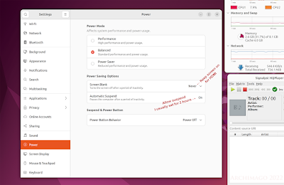 9. Consider Linux power options and turning on auto login. I've noticed that when Ubuntu puts the machine to sleep and then wakes up (eg. with movement of the trackpad or key stroke), it does a really good job of picking up the connected HDMI AV receiver and handshaking with the USB DAC. This is great because I like saving power so it means I don't need the machine turned on 24/7.