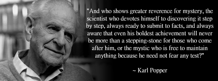 I've noticed over the years on audio forums that certain individuals will "pop" up to spew something about Karl Popper (1902-1994) as if his philosophical writings on science somehow contradicts the importance of objective exploration of audiophile claims. Usually, these comments are brief if not downright nebulous.Popper's claim to fame has been the concept of "falsifiability" as it applies to scientific inquiry. Here's a simple straightforward summary, and here's a more complex one from Stanford Encyclopedia of Philosophy with references. And his book in PDF form: The Logic of Scientific Discovery. Basically, it says that a characteristic of true science is that tests can be envisioned to at least attempt to falsify predictions made by a hypothesis. For some situations, we might not have the technology to test the hypothesis yet, but at least we should be able to imagine what it would take to falsify the belief (eg. it took years to demonstrate predictions made by Einstein's Theory of General Relativity). In Popper's own words: "statements or systems of statements, in order to be ranked as scientific, must be capable of conflicting with possible, or conceivable observations”.